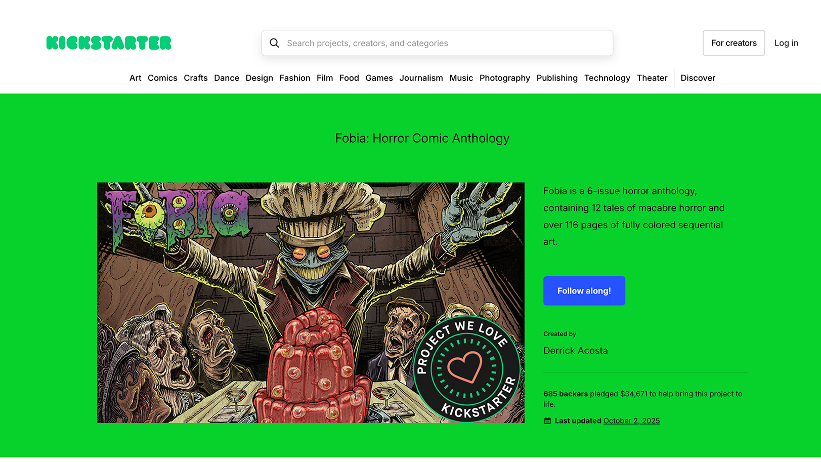 Our Comic Book FOBIA reached $34,000 on Kickstarter with 685 Backers! Thank You!